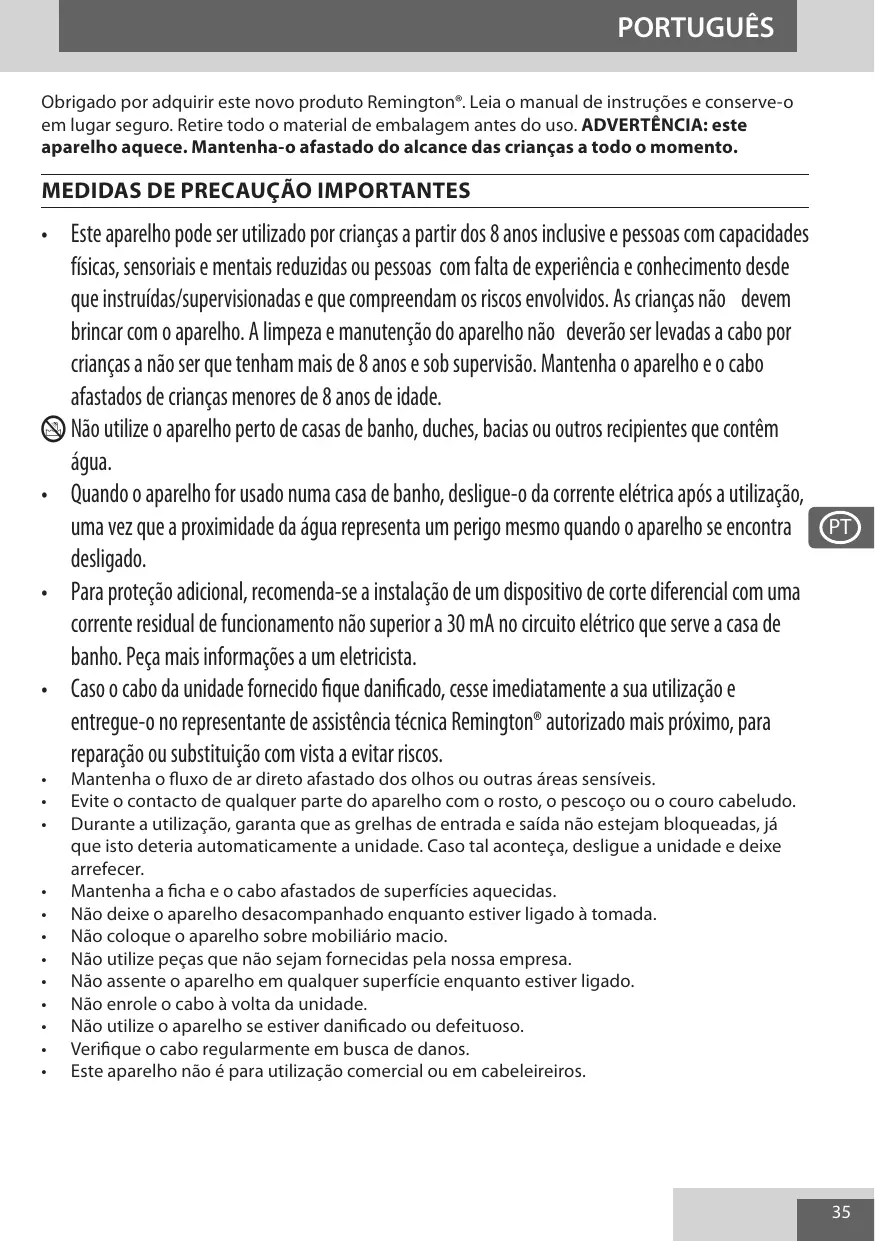 D6077 - Secador de cabelo REMINGTON - Manual de utilização gratuito