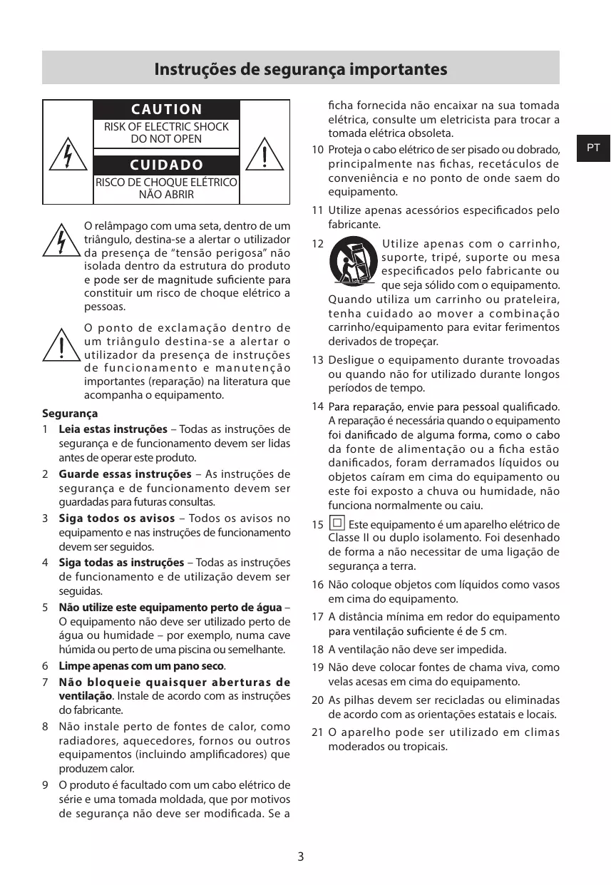 Le point d’exclamation dans un triangle équilatéral est destiné à alerter l’utilisateur de la présence d’instructions importantes d’utilisation et de maintenance dans la documentation accompagnant l’appareil. Sécurité 1 Lisez ces instructions – Toutes les consignes de sécurité et de fonctionnement doivent être lues avant d’utiliser ce produit. 2 Conservez ces instructions – Les instructions de sécurité et de fonctionnement doivent être conservées pour référence ultérieure. 3 Respectez tous les avertissements - Tous les avertissements sur cet appareil et dans les instructions d’utilisation doivent être respectées. 4 Suivez toutes les instructions – Toutes les instructions et consignes d’utilisation doivent être suivies. 5 N’utilisez pas cet appareil près de l’eau. L’appareil ne doit jamais être utilisé près de l’eau ou de l’humidité, tel que dans un sous-sol humide ou près d’une piscine ou similaires. 6 Nettoyez l’appareil uniquement à l’aide d’un . 7 Ne bloquez pas les ouvertures de ventilation. Installez l’appareil en suivant les instructions du fabricant. 8 Ne placez pas l’appareil près d’une source de chaleur, tels que des radiateurs, des bouches d’air chaud, des gazinières ou tout autre appareil (y compris des amplificateurs) qui produisent de la chaleur. 9 L’ a p p a r e i l e s t f o u r n i a v e c u n c o r d o n d’alimentation standard et une prise moulée qui, pour des raisons de sécurité, ne doivent