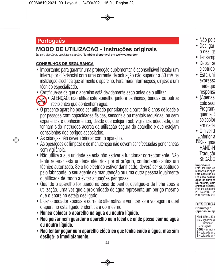 36DaRryVALERAPISTOLETSECHANTPOWERULTIMATE2400 - Secador de cabelo DARTY - Manual de utilização gratuito