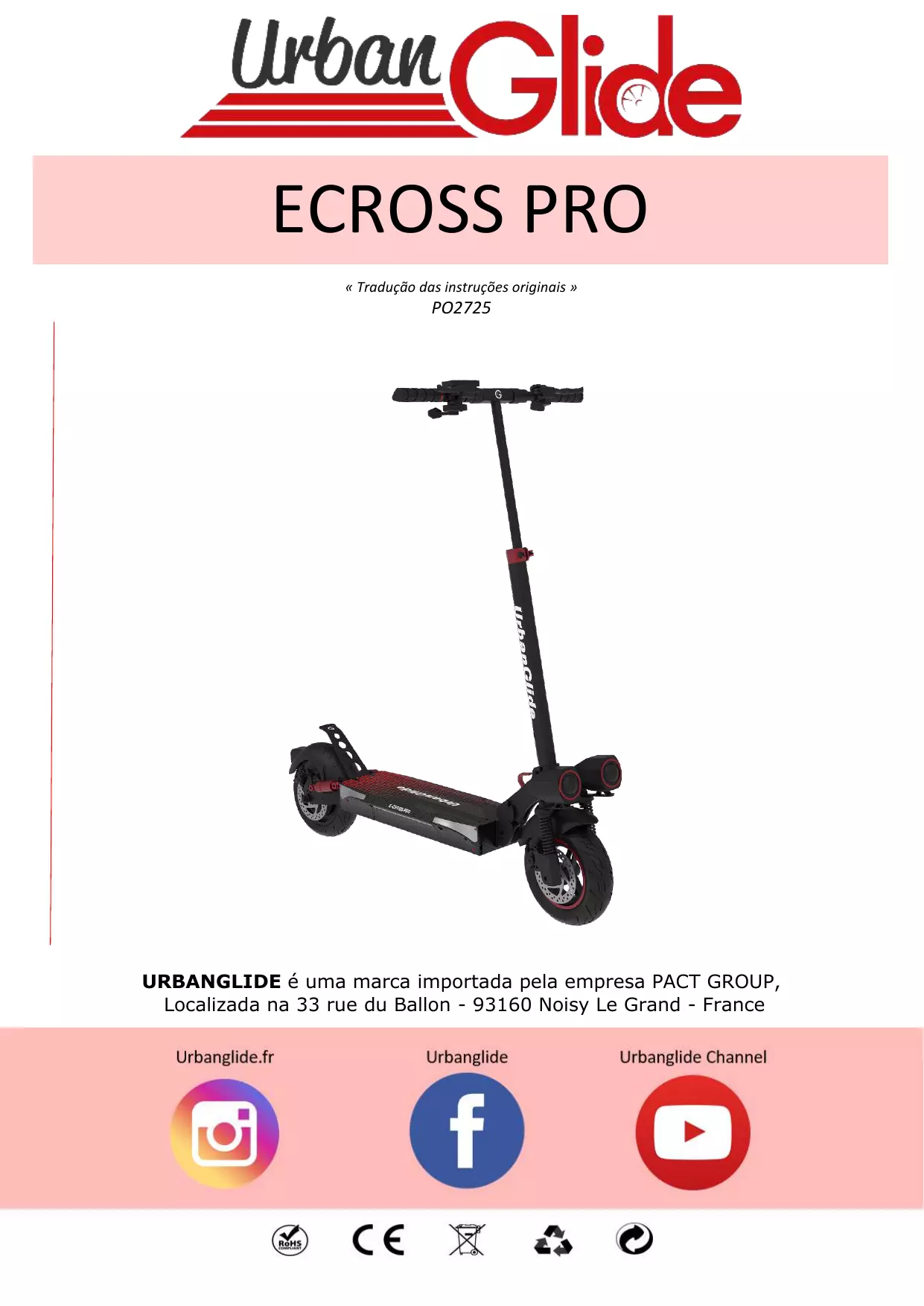 CrossPro13AH - Patinete elétrico URBANGLIDE - Manual de utilização gratuito