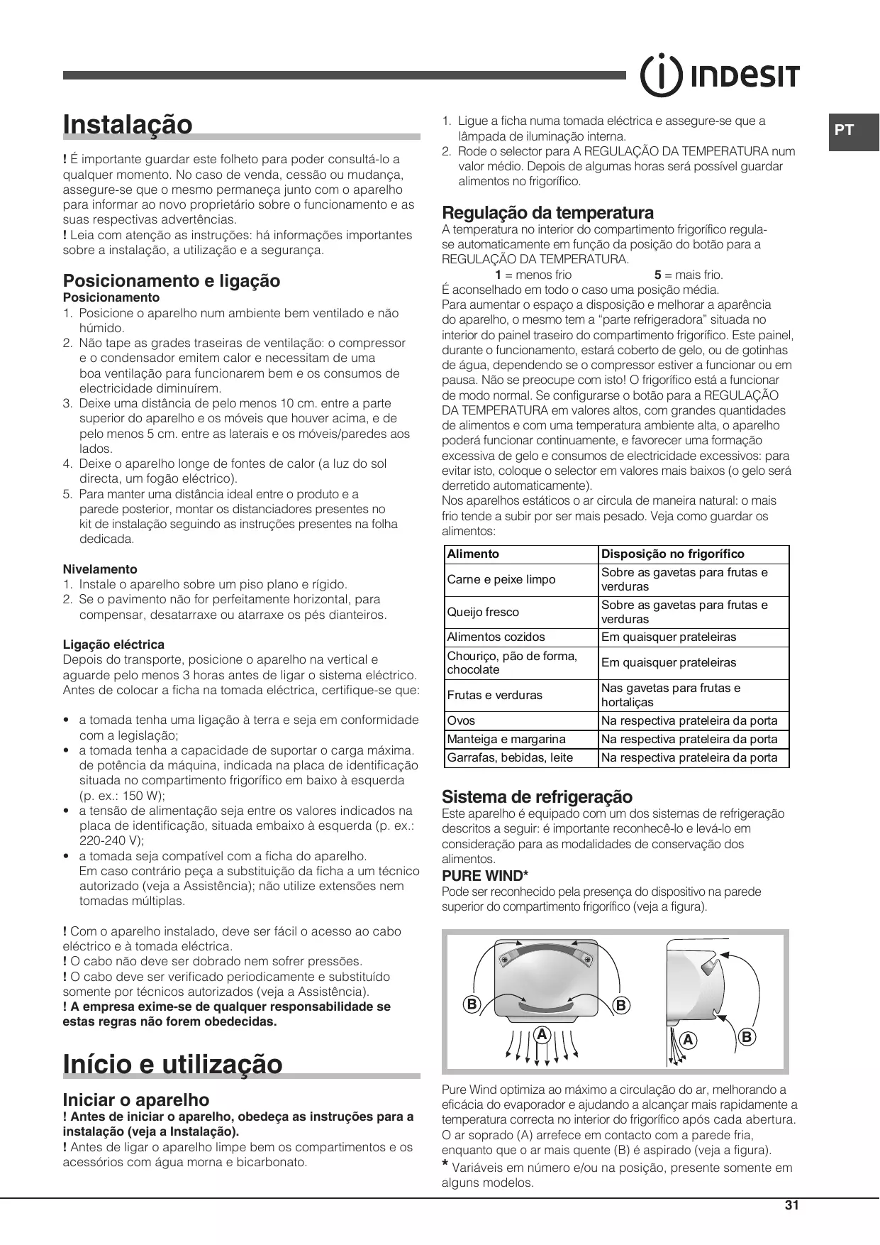 A10 - Geladeira INDESIT - Manual de utilização gratuito