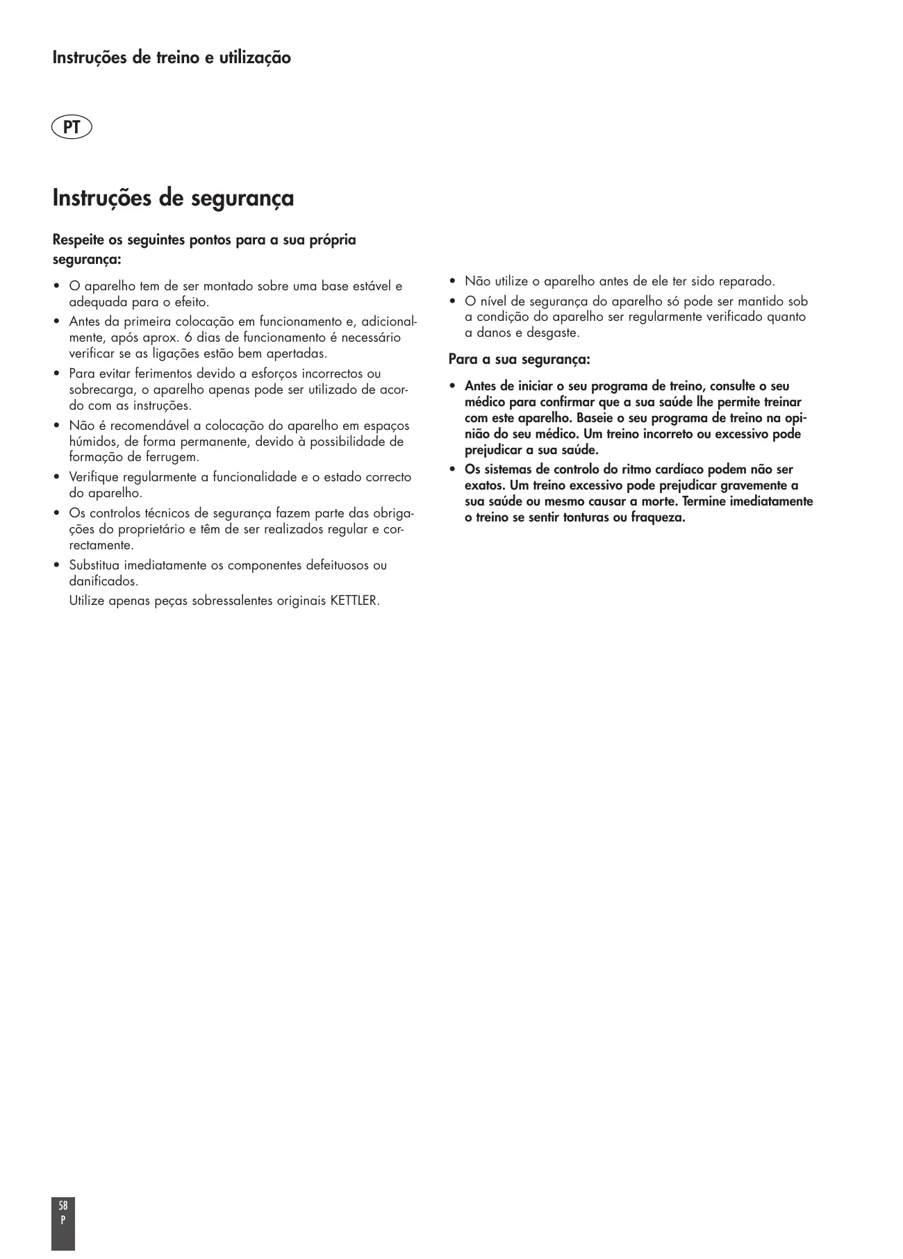 • Asegúrese periódicamente de la capacidad de funcionamiento y del correcto estado del aparato de entrenamiento.
