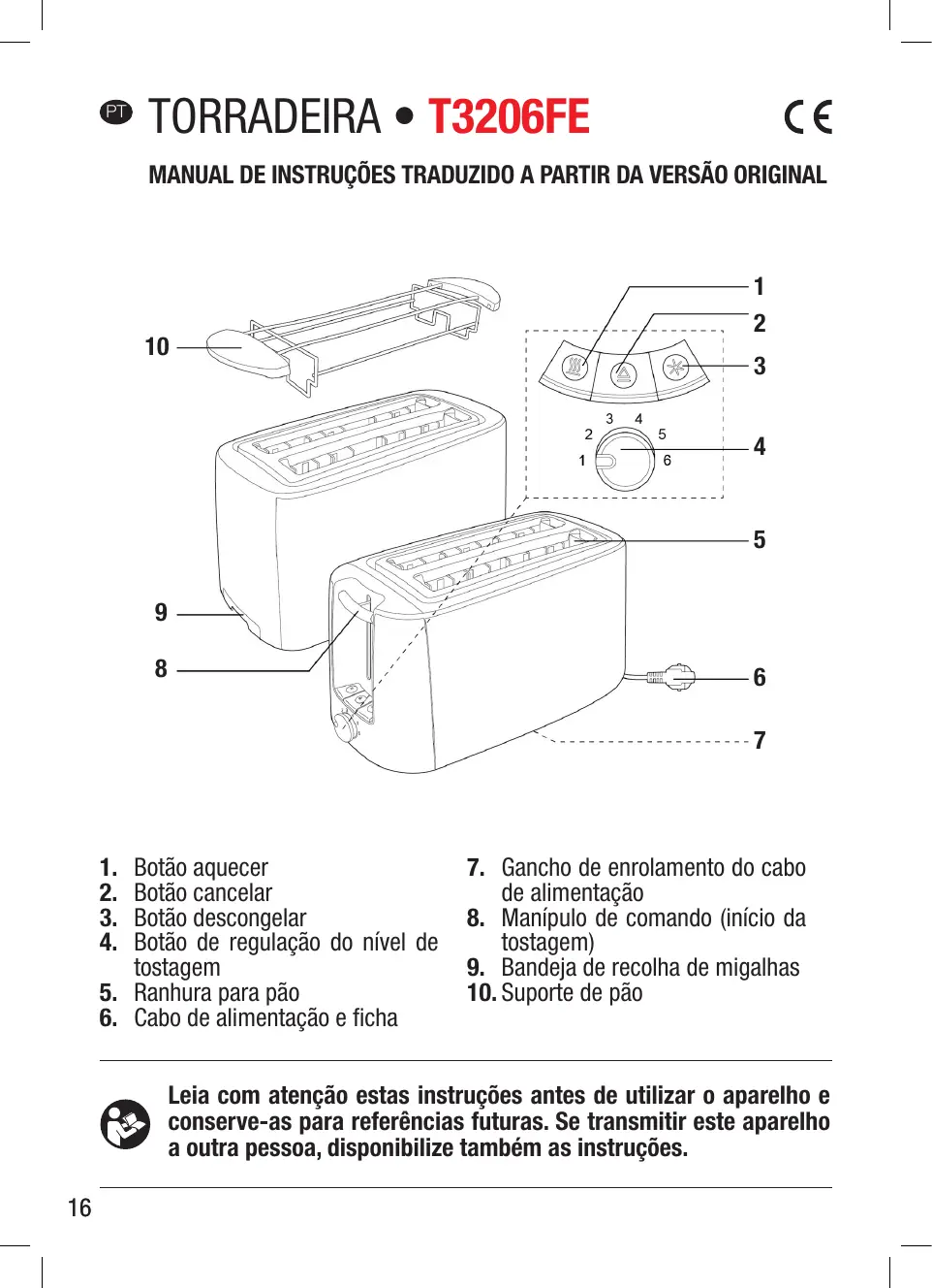 T3206FE - Torradeira ELSAY - Manual de utilização gratuito