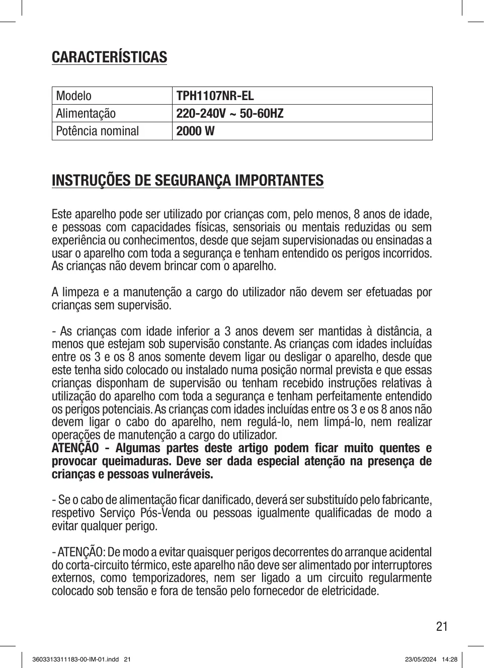 MANUAL DE UTILIZADOR Tour Soufflante Céramique - 2000W - TPH1107NR-EL ELSAY