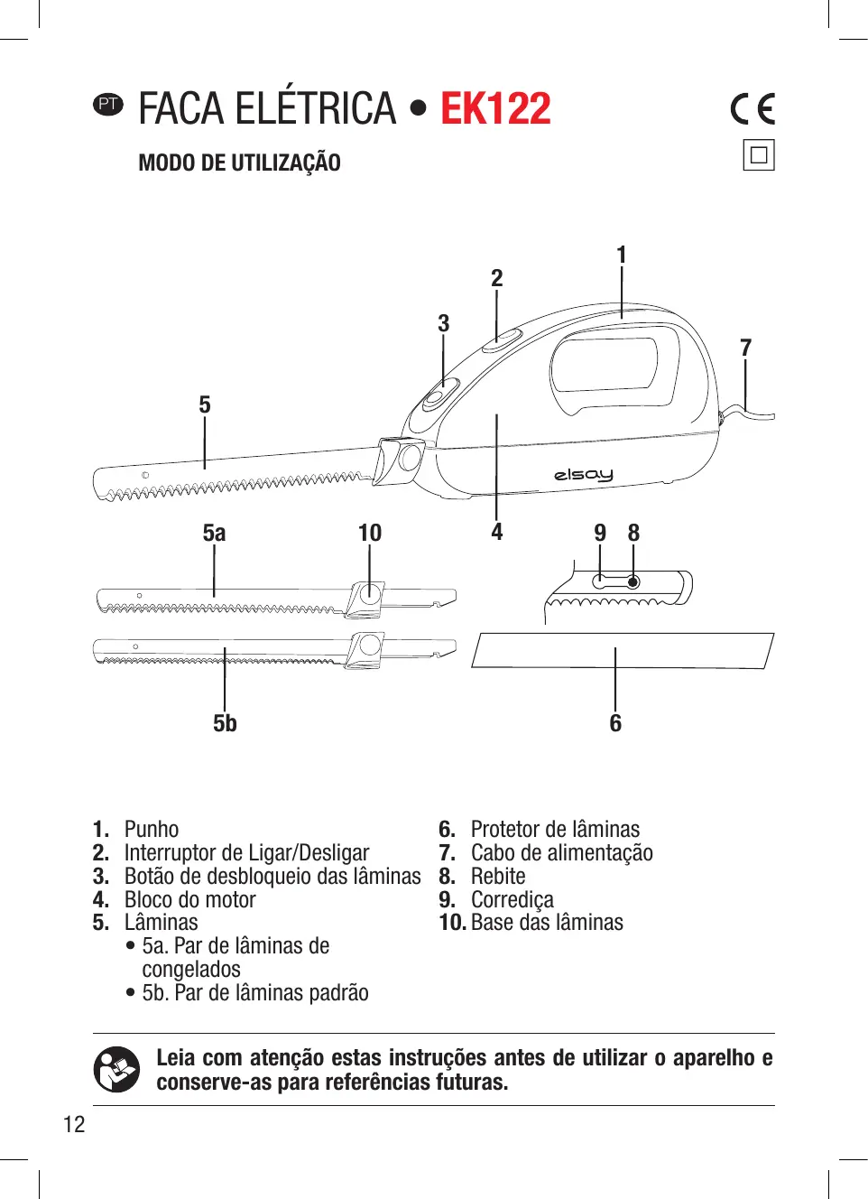 EK122 - Faca elétrica ELSAY - Manual de utilização gratuito