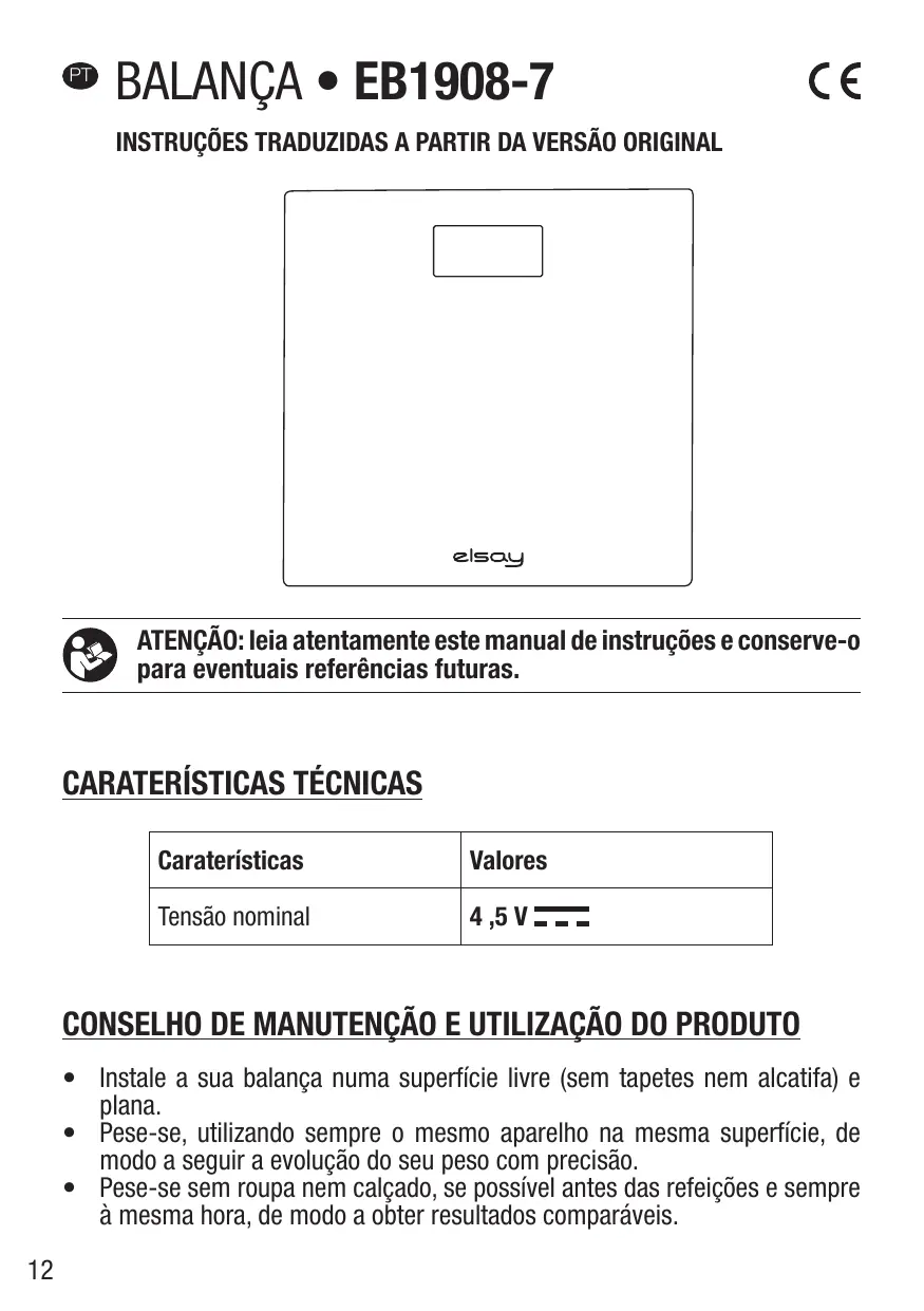 électronique - EB1908-7 - Balança de banheiro ELSAY - Manual de utilização gratuito