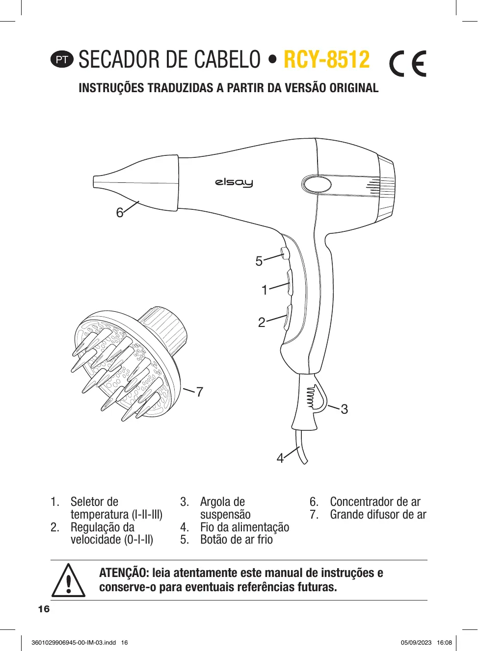 RCY-8512 - Secador de cabelo ELSAY - Manual de utilização gratuito