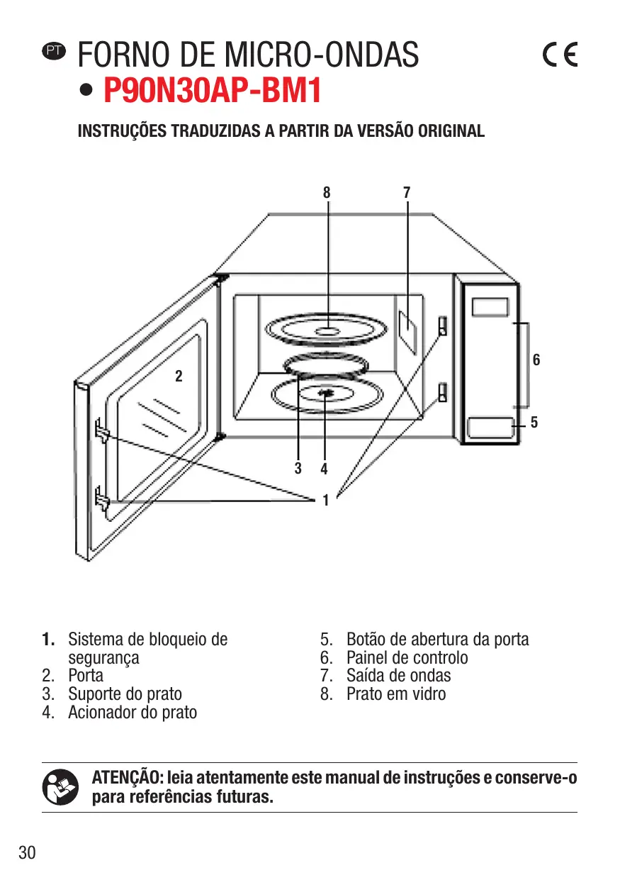 ATENÇÃO: leia atentamente este manual de instruções e conserve-o para referências futuras. 30