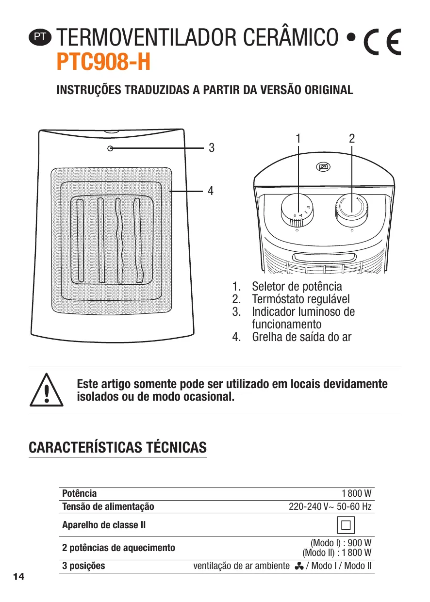 PTC908-H - Aquecedor ventilador ELSAY - Manual de utilização gratuito
