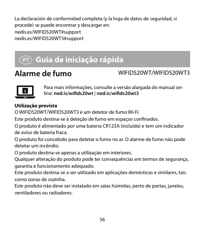 Baixe as instruções para o seu Détecteur de fumée connecté em formato PDF gratuitamente! Encontre o seu manual WIFIDS20WT / WIFIDS20WT3 - NEDIS e retome o controlo do seu dispositivo eletrónico. Nesta página estão publicados todos os documentos necessários para a utilização do seu dispositivo. WIFIDS20WT / WIFIDS20WT3 da marca NEDIS.