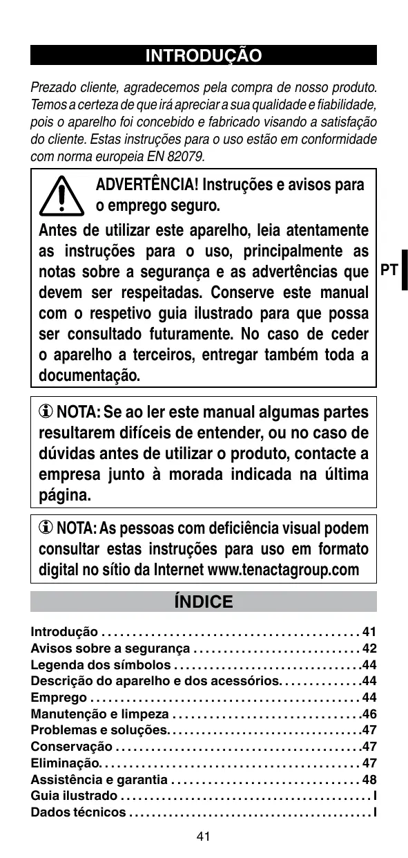 Utilisation Nettoyage et entretien . Problèmes et solutions Conservation. Élimination. Assistance et garantie . Guide illustré et qu’il ne présente aucun signe de dommage.