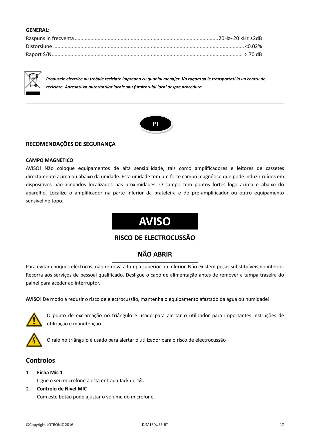 MANUAL DE UTILIZADOR DJM150 USB Bluetooth IBIZA
