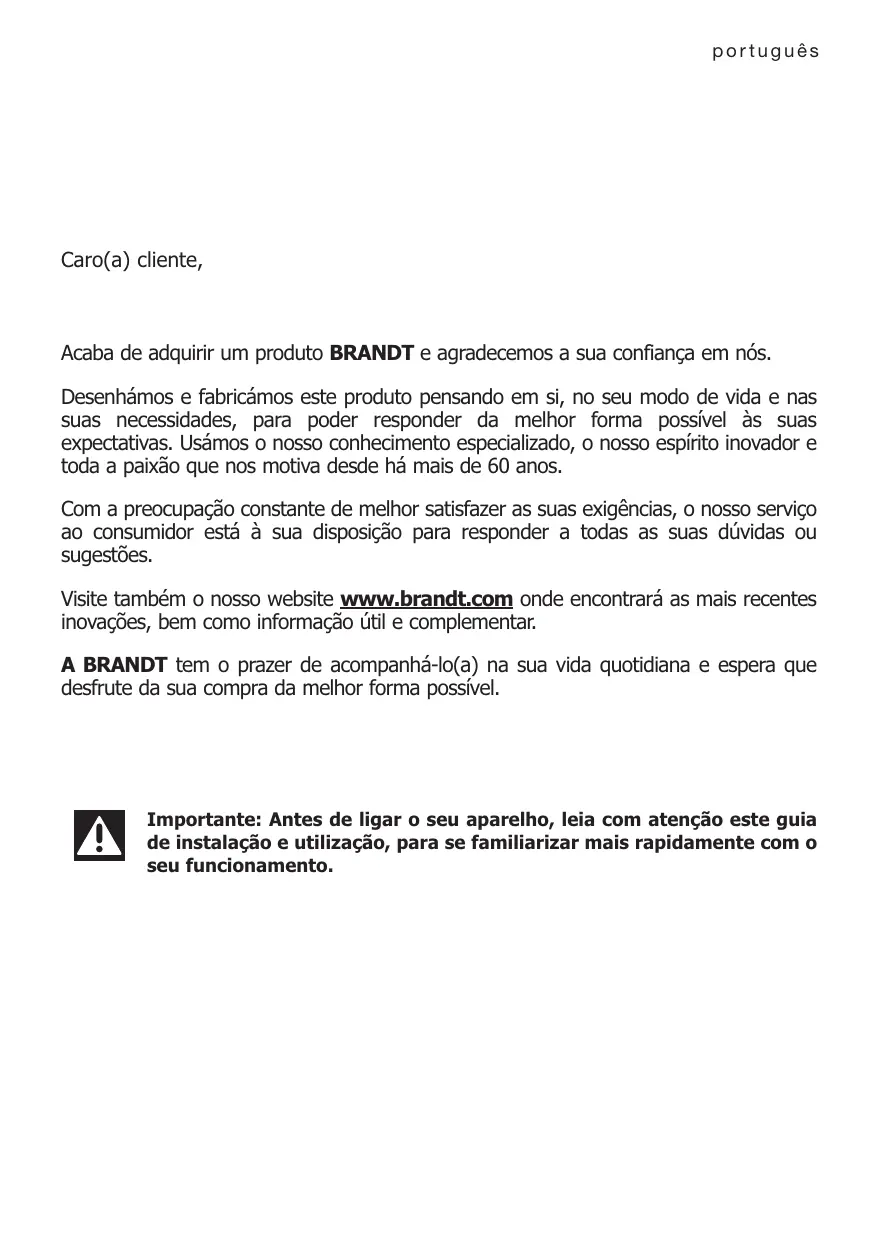 Acaba de adquirir um produto BRANDT e agradecemos a sua confiança em nós.