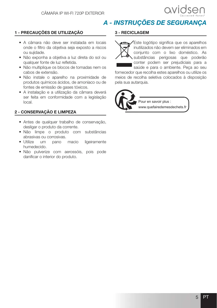 MANUAL DE UTILIZADOR FIXE EXTERIEURE WIFI HD AVIDSEN