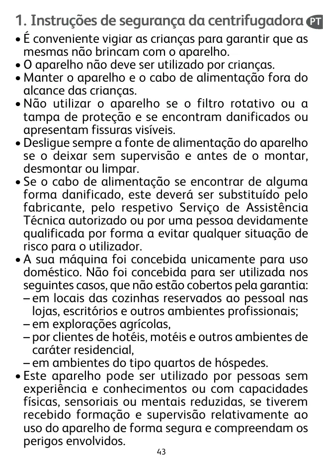 + Cet appareil est exclusivement destiné à un usage domestique. Le fabricant décline toute responsabilité et se réserve le droit de résilier la garantie en cas d'utilisation