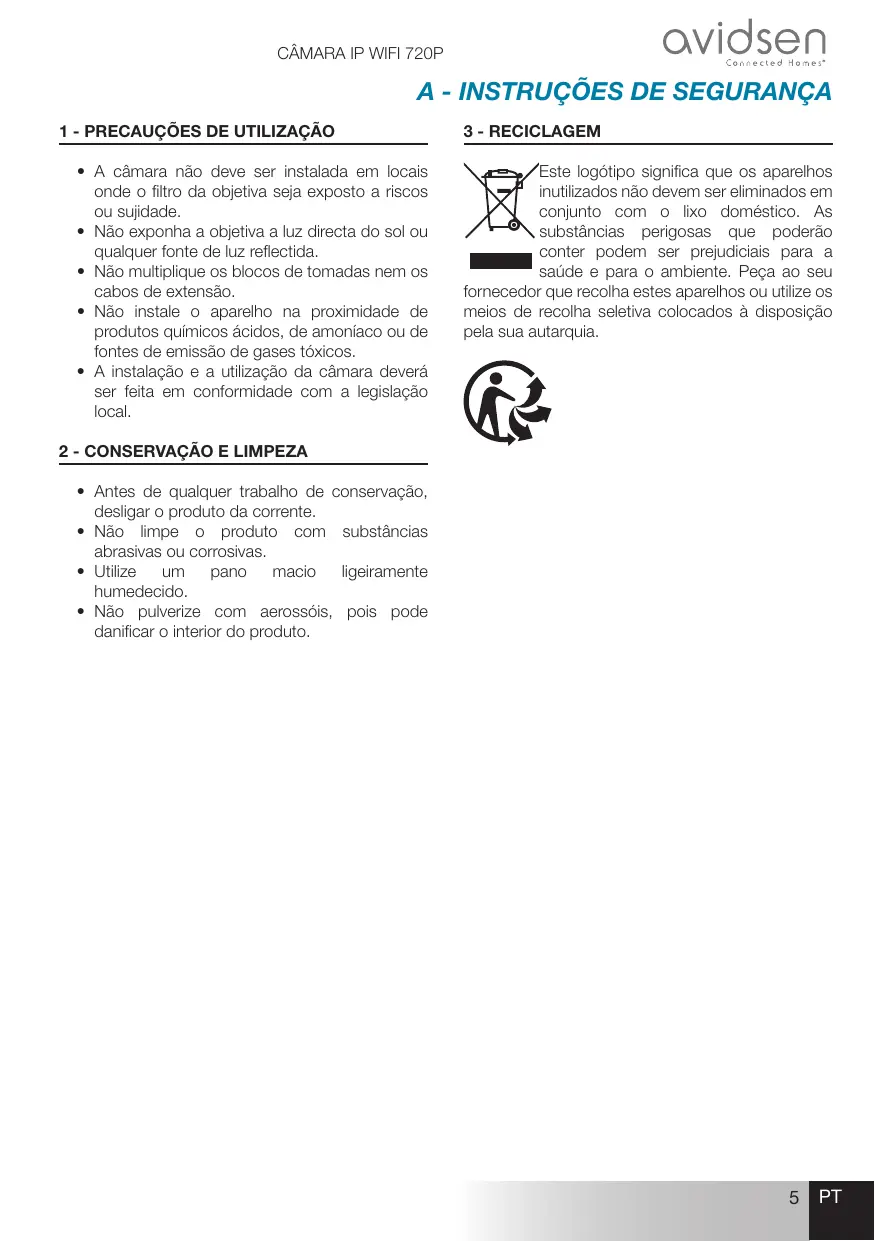 MANUAL DE UTILIZADOR Caméra Sécurité IP Intérieur AVIDSEN