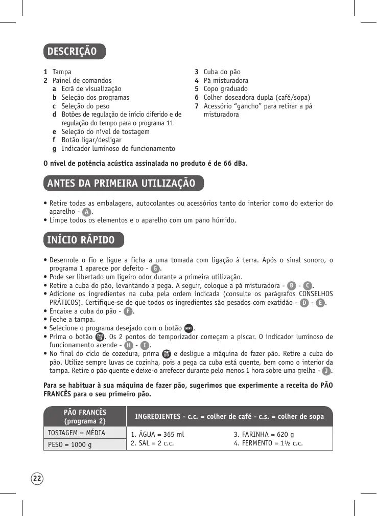 MANUAL DE UTILIZADOR PAIN DORE 1kg OW21 MOULINEX