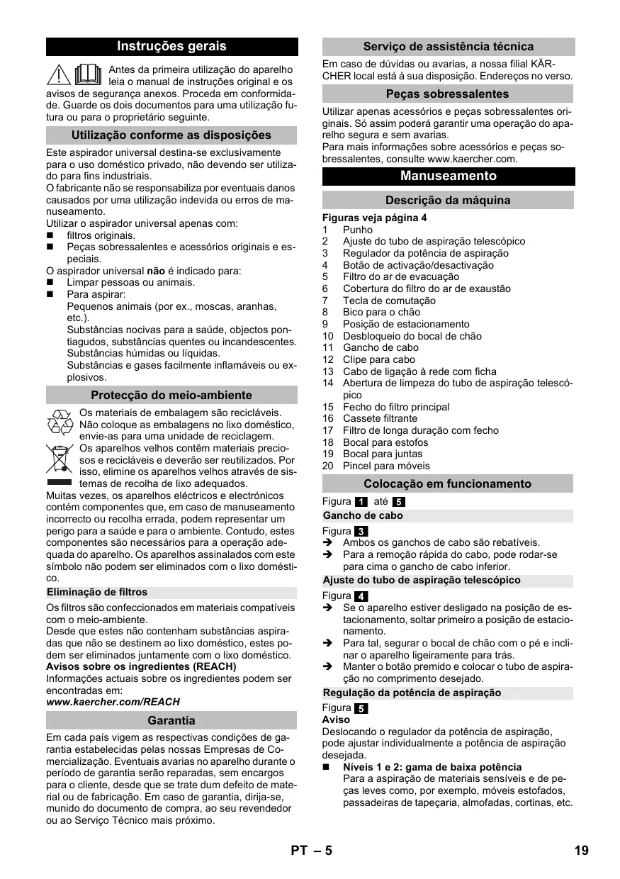 Encontre gratuitamente o manual do aparelho VC5 KARCHER em formato PDF.