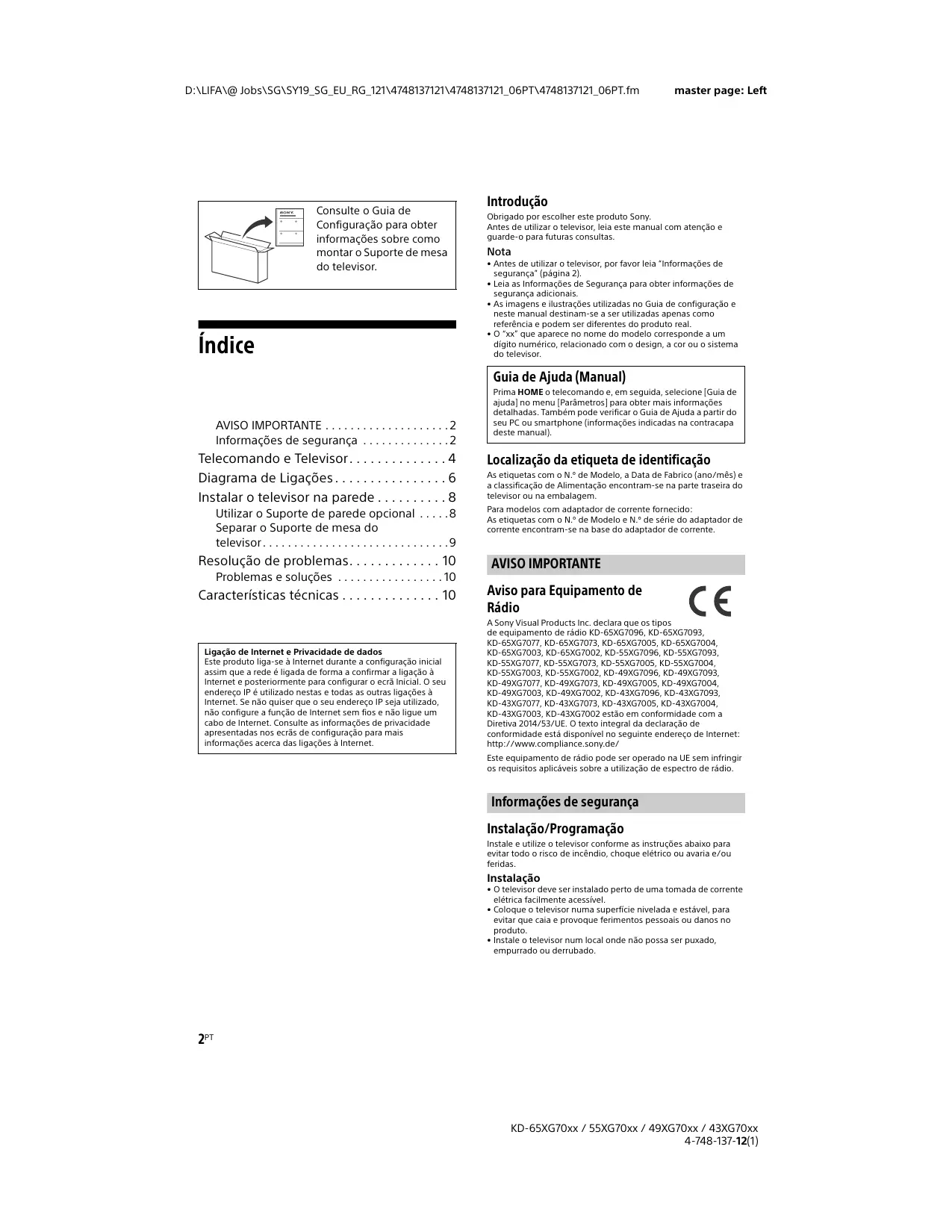 Encontre gratuitamente o manual do aparelho KD49XG7005 SONY em formato PDF.
