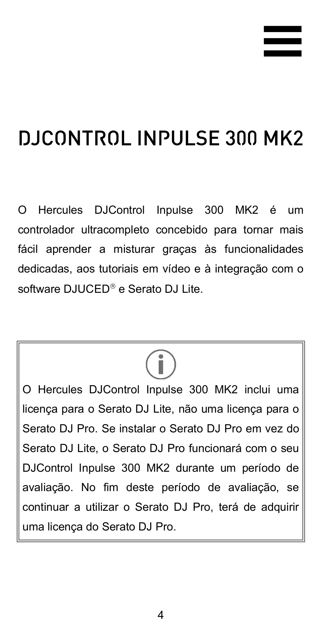 INPULSE 300 MK2 - Contrôleur usb HERCULES - Manual de utilização gratuito