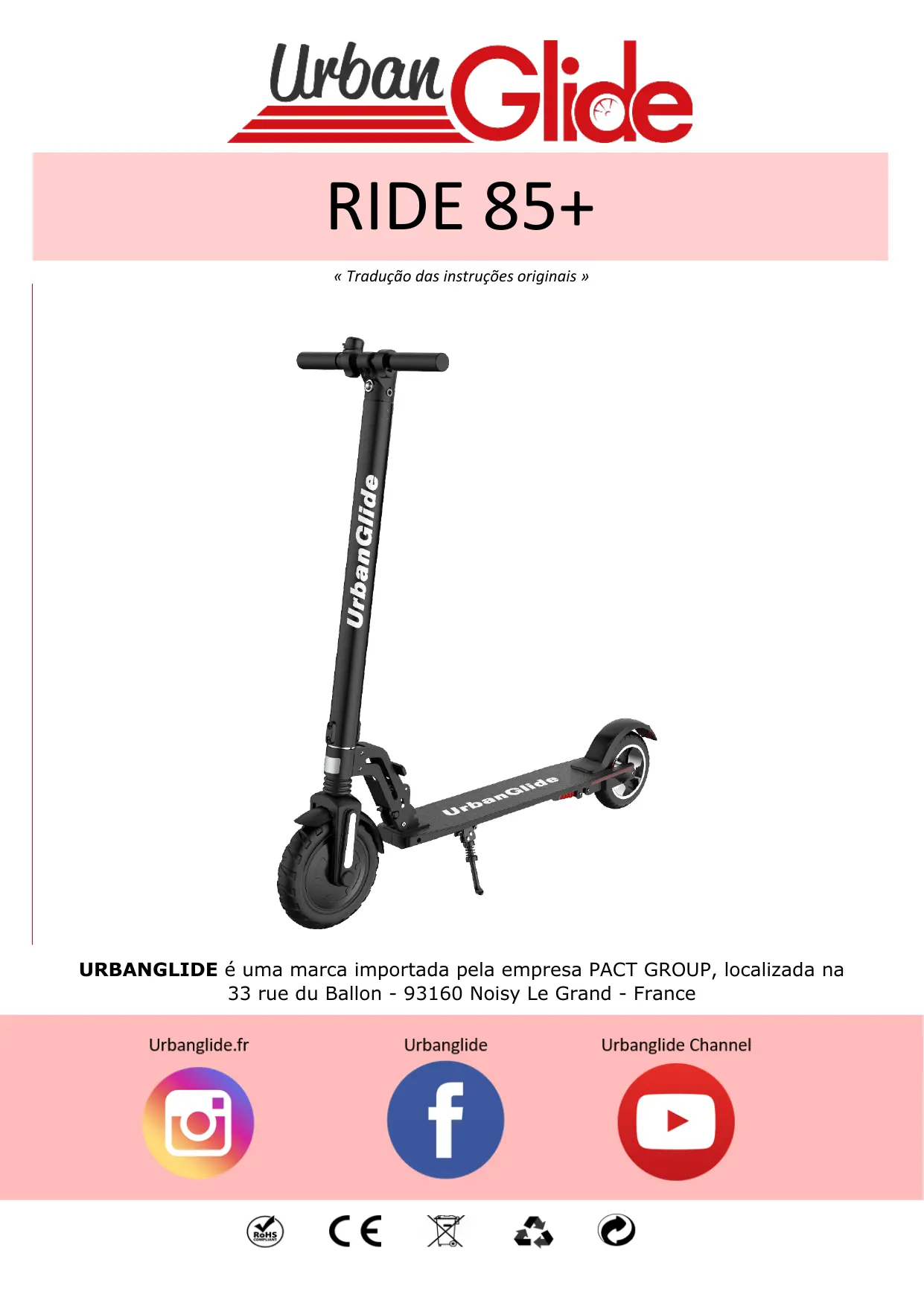 RIDE 85+ - Patinete elétrico URBANGLIDE - Manual de utilização gratuito