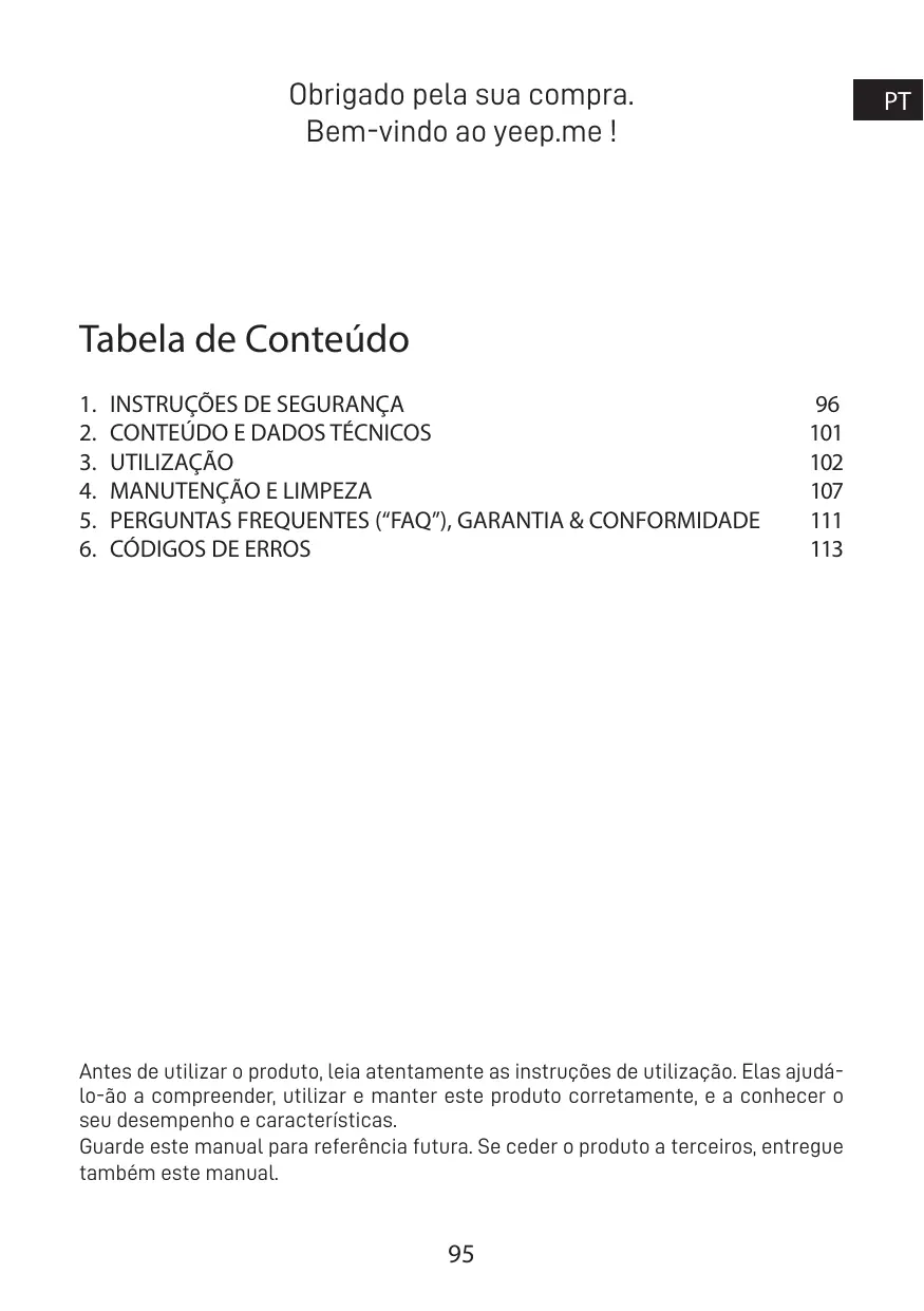 Encontre gratuitamente o manual do aparelho e-sixteen YEEP.ME em formato PDF.