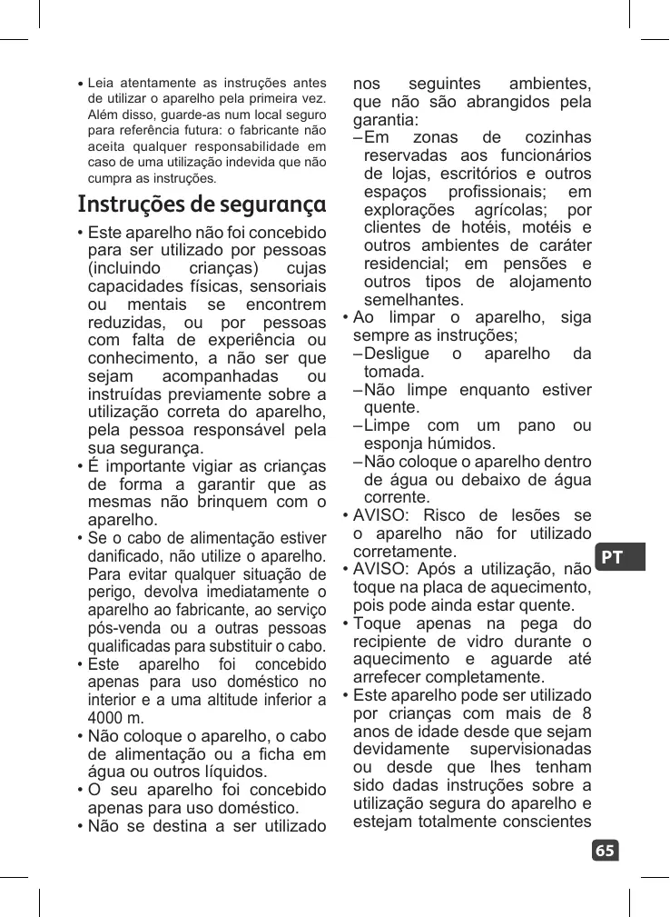+ Ne pas utiliser la verseuse dans un four à micro-ondes, sur une flamme et sur des plaques de cuisinières électriques.