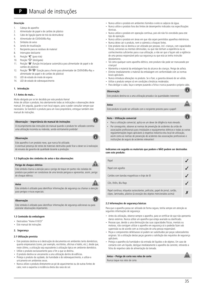 Home X10CD - Fragmentadora de documentos HAMA - Manual de utilização gratuito