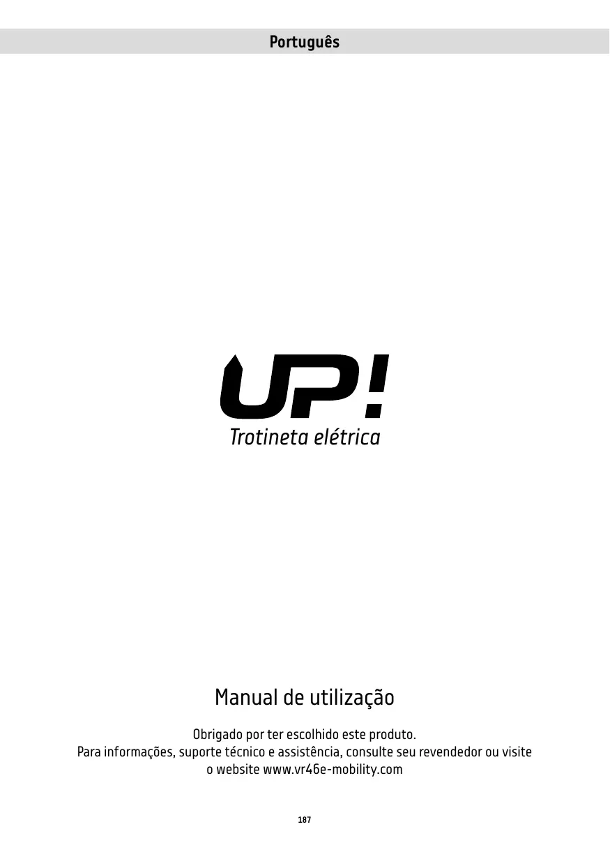 Baixe as instruções para o seu Patinete elétrico em formato PDF gratuitamente! Encontre o seu manual VR46 - UP! e retome o controlo do seu dispositivo eletrónico. Nesta página estão publicados todos os documentos necessários para a utilização do seu dispositivo. VR46 da marca UP!.