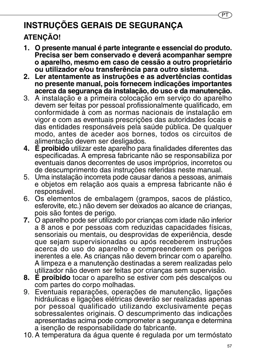 Attention: _ la température de l'eau dans le réservoir peut provoquer instantanément de graves brûlures. Les enfants, les personnes handicapées ou âgées sont les sujets les plus à risque de brûlures. Contrôler la température de l'eau avant de prendre son bain ou sa douche.