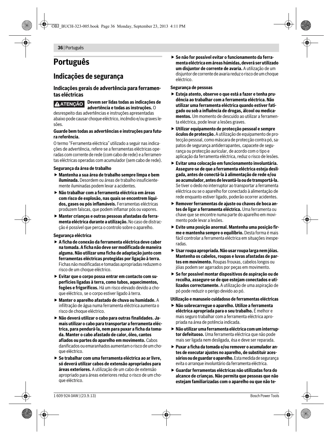 Indicaçôes gerais de advertência para ferramen- tas eléctricas