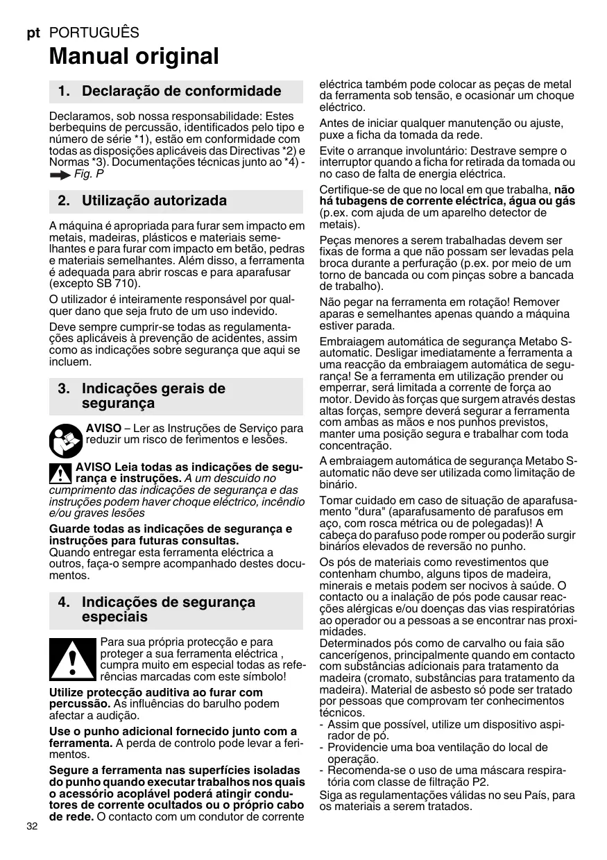 MANUAL DE UTILIZADOR SB 710 SBE 701 SP SBE 710 SBE 730 SBE 751 SBE 850 SBE 900 Impuls SBE 1000 SBE 1100 Plus SBE 1300 METABO