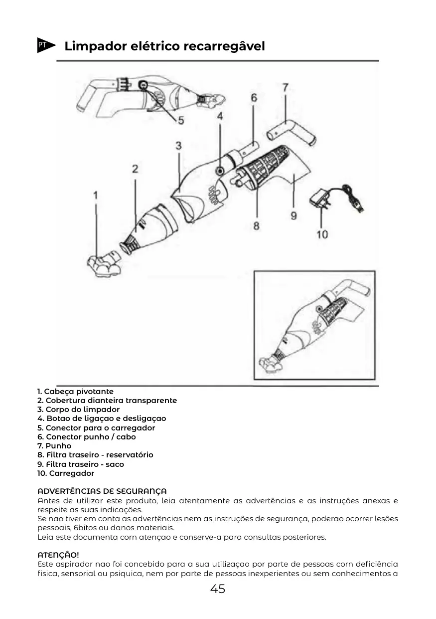 Encontre gratuitamente o manual do aparelho ELECTRIC VAC VCB10 GRE em formato PDF.