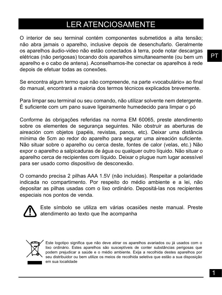MANUAL DE UTILIZADOR DéCODEUR TNT HD 011128.2 ASTRELL