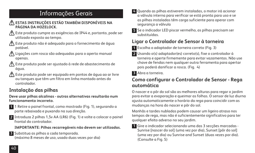 Encontre gratuitamente o manual do aparelho SENSOR, 1 VOIES - 2212 HOZELOCK em formato PDF.