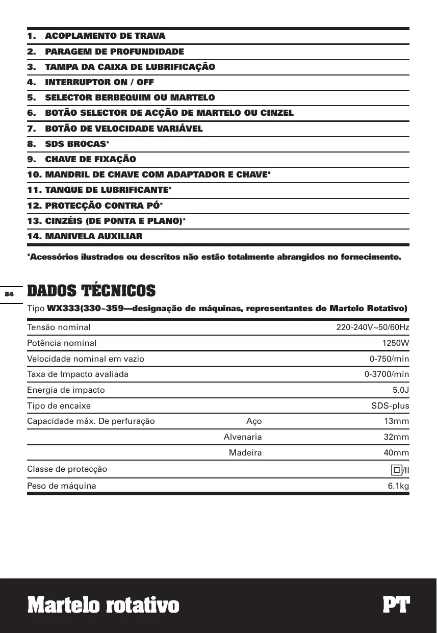 WT344 - WX333 - Marteau perforateur WORX - Manual de utilização gratuito