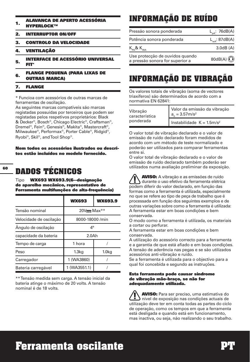 WX693 - WX693.9 - Multiferramenta WORX - Manual de utilização gratuito