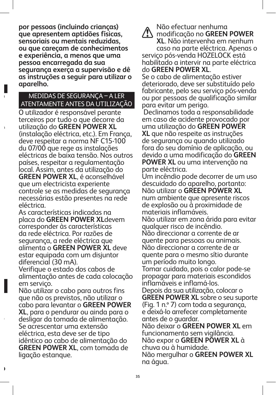 MANUAL DE UTILIZADOR GREEN POWER XL - 4192 HOZELOCK