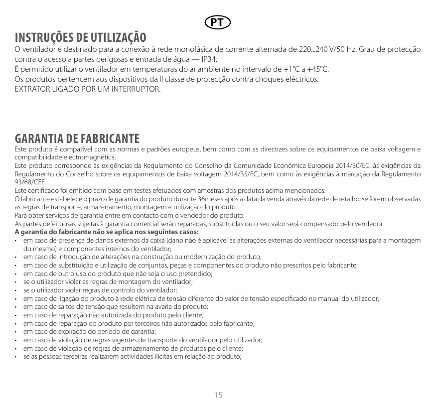Agaratia do fabricantendo sa aplicanos saguintes caso em caso de presença de danos exteros da caixa (dano nâo é aplicvel äs alteraçôes externas do ventilador necessärias para a montagem do mesmo) e componentes intemos do ventilador.