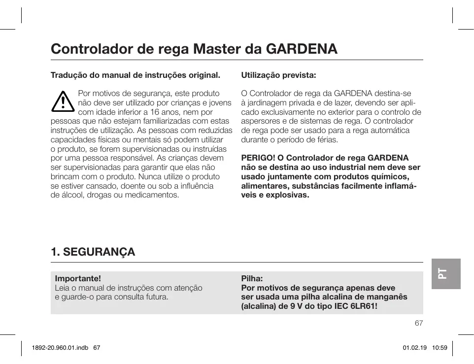 MANUAL DE UTILIZADOR Master - 1892 GARDENA