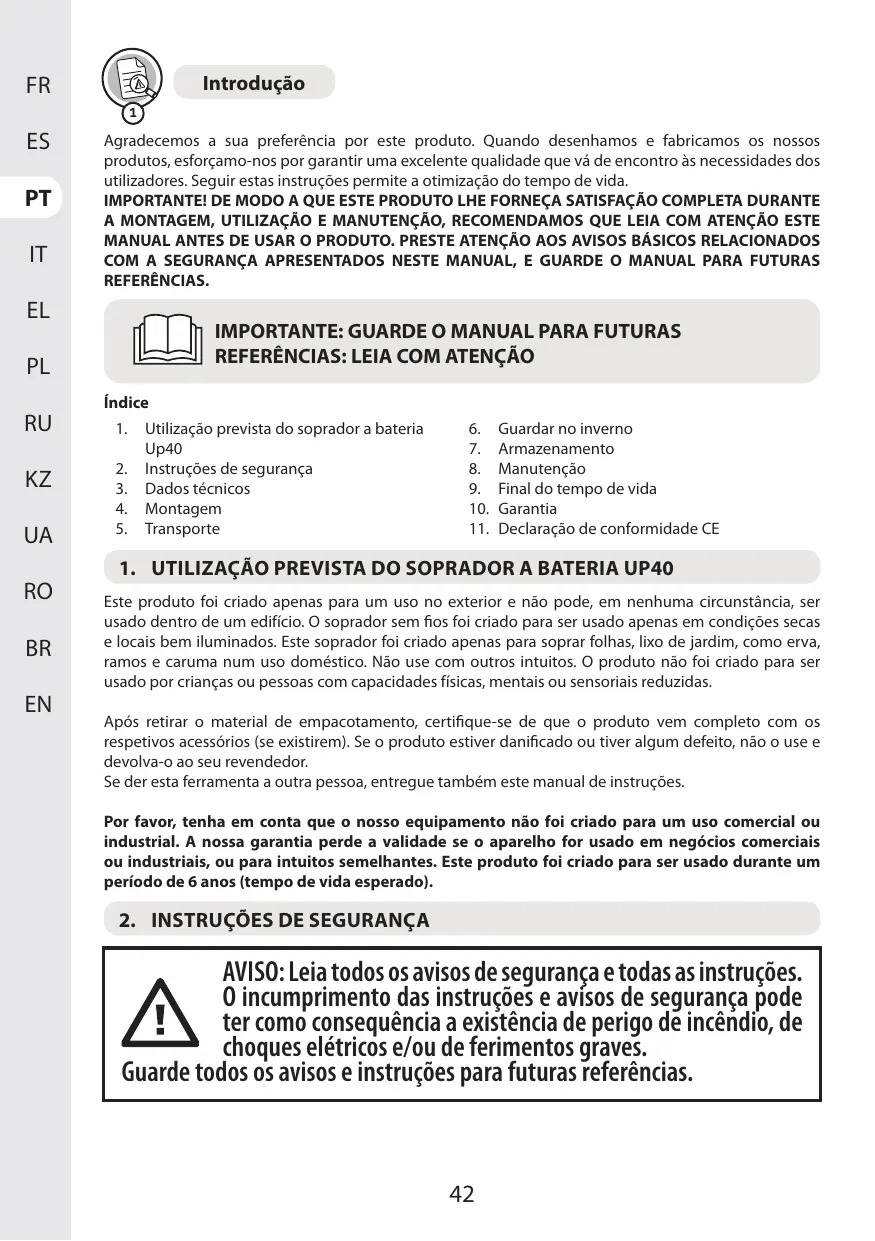 UP40 - 40VBL2-GT.1 - Soprador de folhas STERWINS - Manual de utilização gratuito