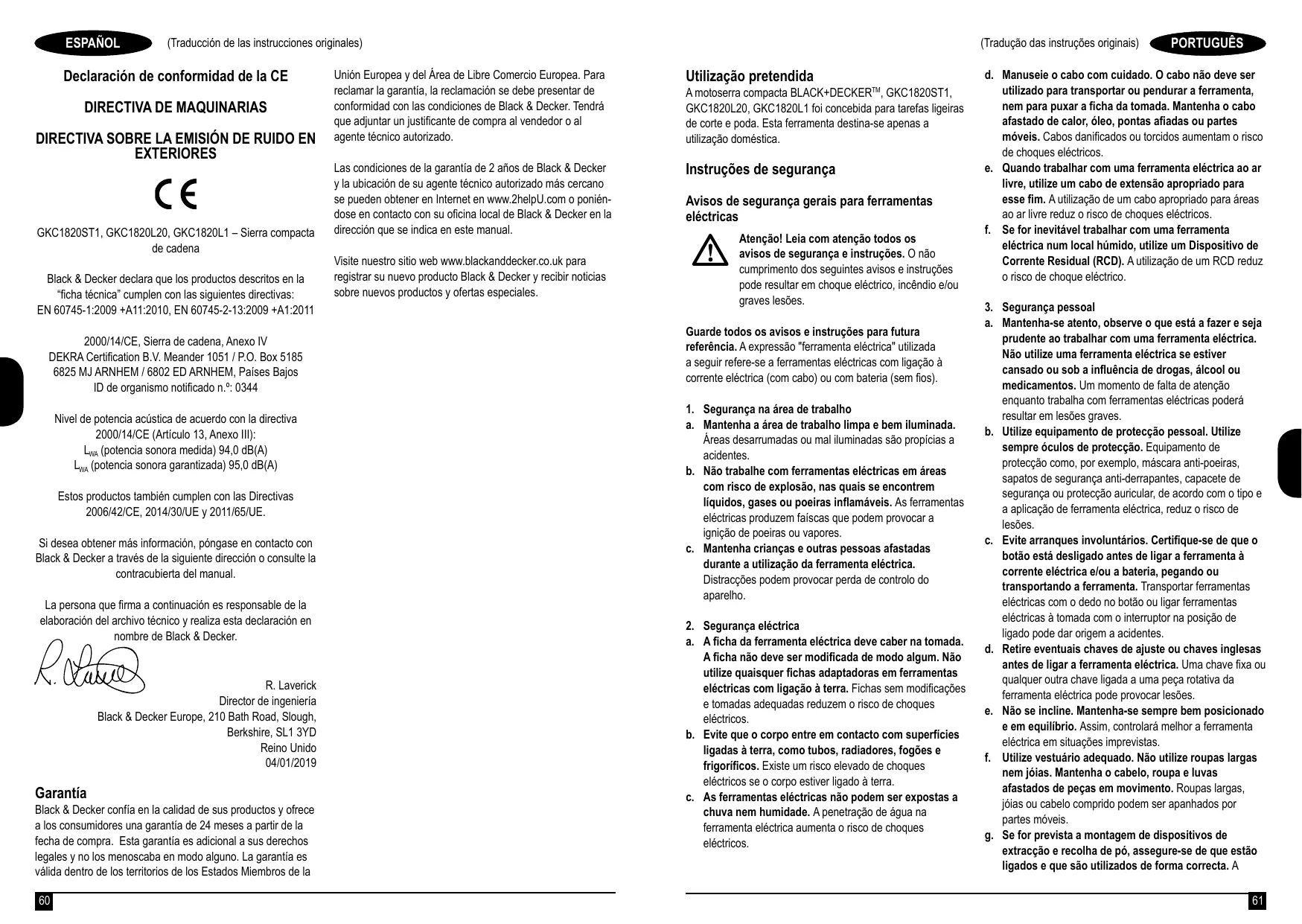 MANUAL DE UTILIZADOR GKC1820ST1 GKC1820L20 GKC1820L1 BLACK & DECKER