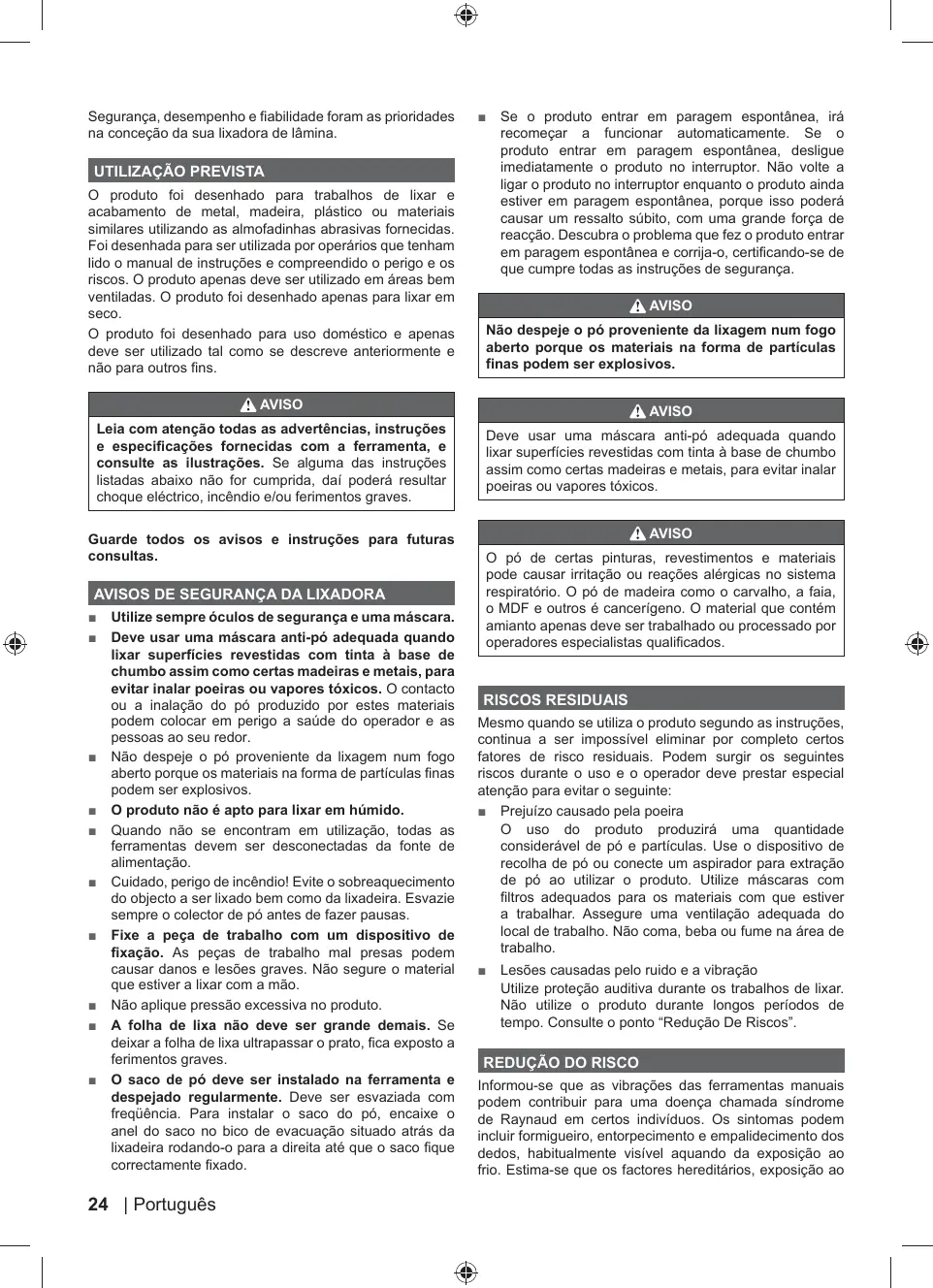 = Ne jetez pas les poussières provenant du ponçage dans un feu ouvert car les matériaux sous forme de fines particules peuvent être explosifs.