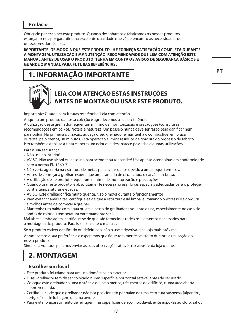 Nous recommandons de ne pas utiliser ce barbecue près de la mer, d'une piscine ou d'une voie ferrée.