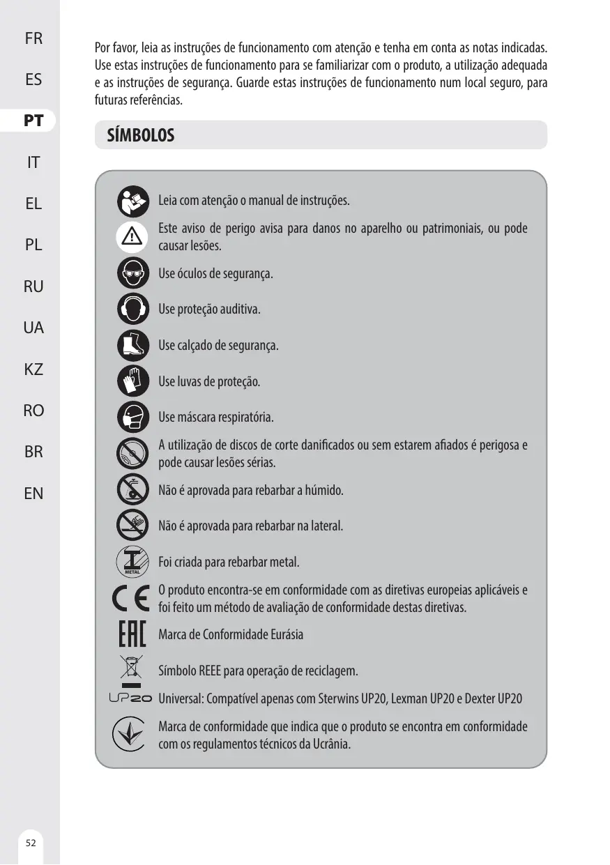 20VAG3-125BL.1 - Meuleuse d'angle DEXTER - Manual de utilização gratuito
