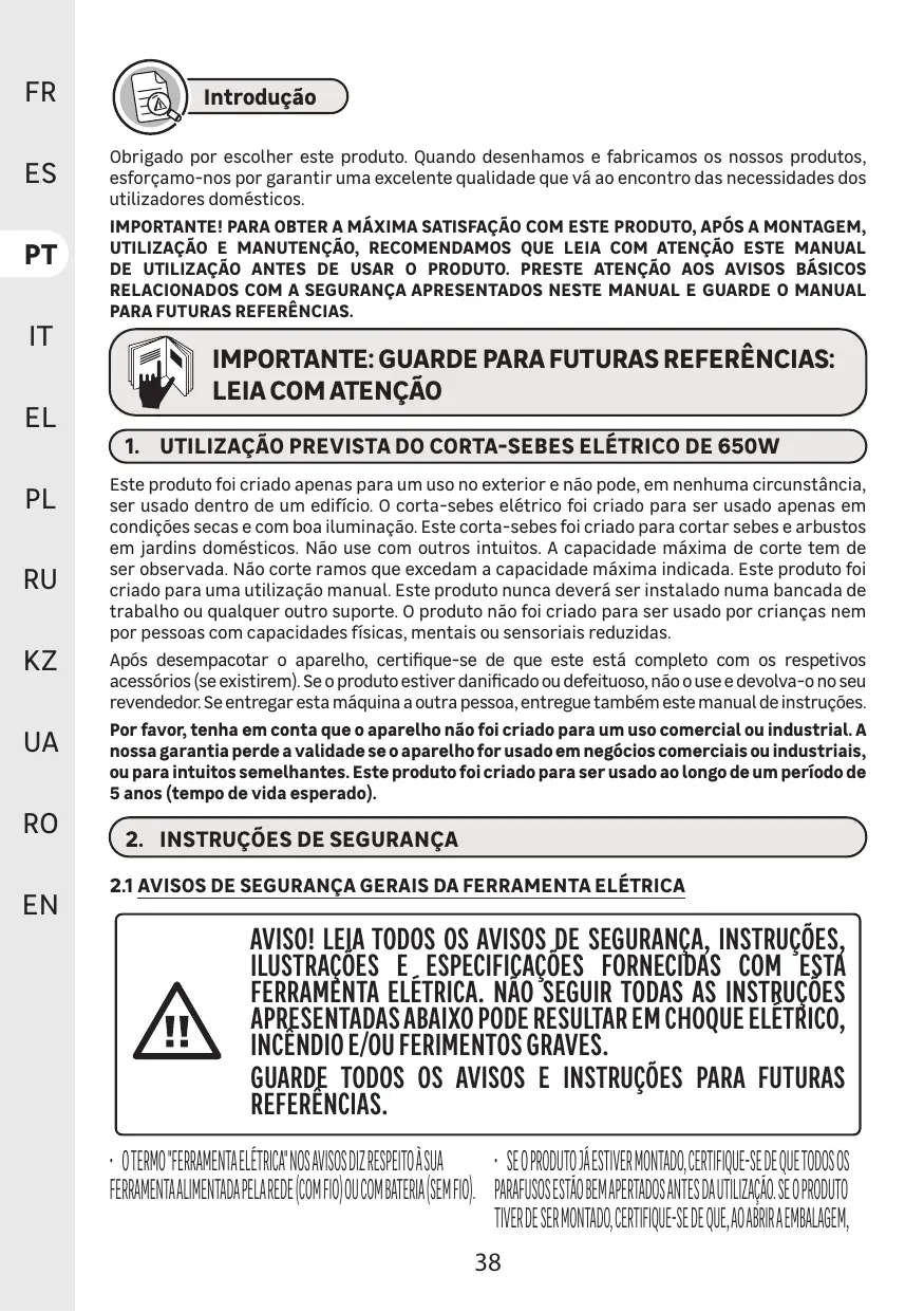 EHT2-60.4 - Aparador de sebes elétrico STERWINS - Manual de utilização gratuito