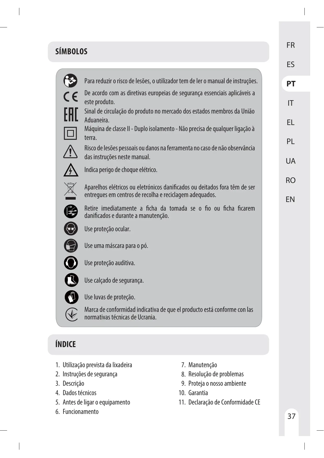 1. Domaine d'utilisation de la ponceuse vibrante 7. Entretien