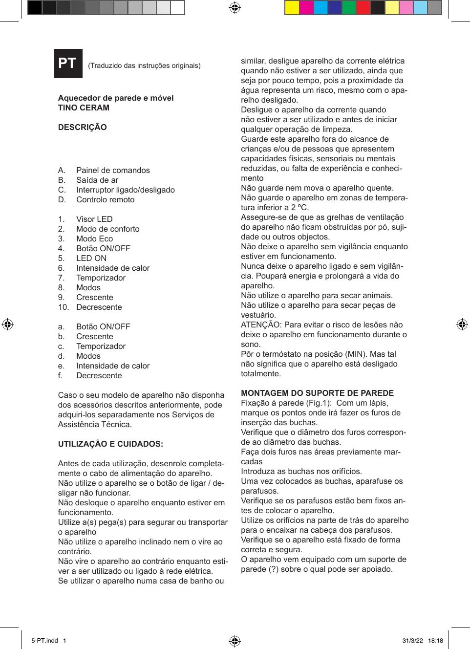 TINO COMBO - Aquecedor ventilador SUPRA - Manual de utilização gratuito