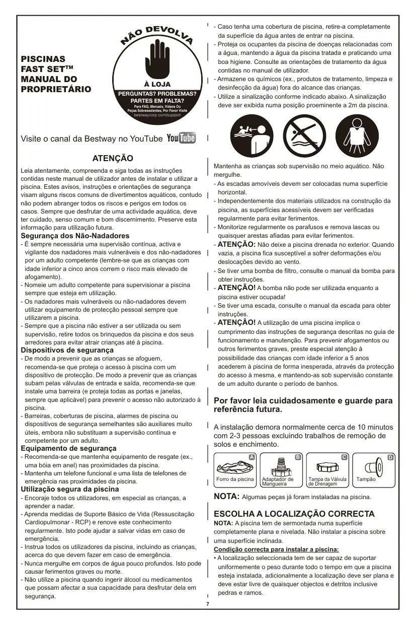 Baixe as instruções para o seu Piscine hors-sol em formato PDF gratuitamente! Encontre o seu manual FAST SET - BESTWAY e retome o controlo do seu dispositivo eletrónico. Nesta página estão publicados todos os documentos necessários para a utilização do seu dispositivo. FAST SET da marca BESTWAY.