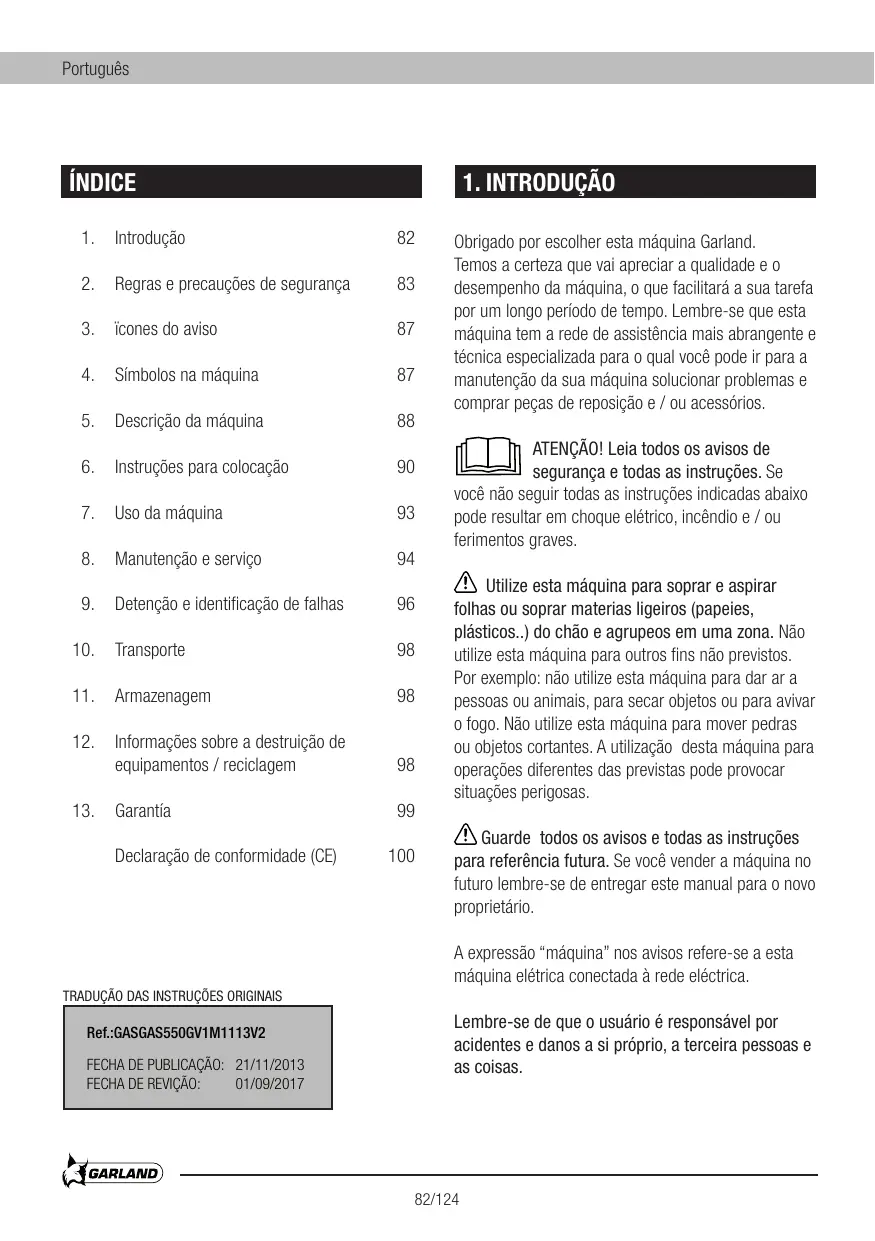 Encontre gratuitamente o manual do aparelho GAS 550 G GARLAND em formato PDF.